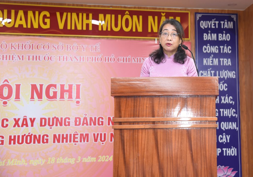 Phát biểu tại Hội nghị, đồng chí Nguyễn Hoàng Lên, Đại diện Đảng ủy Khối cơ sở Bộ Y Tế đánh giá cao những thành tích mà Đảng bộ Viện Kiểm nghiệm Thuốc Thành phố Hồ Chí Minh đã đạt được trong năm 2023. Đồng chí Nguyễn Hoàng Lên đề nghị, trong năm 2024 Đảng bộ Viện Kiểm nghiệm Thuốc Thành phố Hồ Chí Minh cần tiếp tục phát huy thành tích đạt được, lựa chọn những khâu đột phá trong công tác, đồng thời khắc phục những hạn chế còn tồn tại đã được chỉ ra để nâng cao năng lực lãnh đạo, hoàn thành xuất sắc nhiệm vụ được giao, trong đó tập trung làm tốt một số nội dung, như: Tiếp tục phát huy tinh thần đoàn kết, thống nhất trong cán bộ, đảng viên; Nâng cao chất lượng nguồn nhân lực đặc biệt là nguồn nhân lực chất lượng cao; chú trọng công tác kiểm tra, giám sát; Đổi mới, nâng cao chất lượng tổ chức học tập, quán triệt tuyên truyền và triển khai học tập nghị quyết, chỉ thị, kết luận của Trung ương, của Đảng ủy Khối. Phát huy thành quả phong trào xây dựng “Không gian văn hóa Hồ Chí Minh” năm 2023 để tiếp tục lan tỏa trong năm 2024.