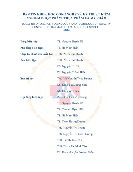 Tin Khoa Học Công Nghệ và Kỹ Thuật Kiểm Nghiệm Bản tin Khoa Học Công Nghệ và Kỹ Thuật Kiểm Nghiệm Dược Phẩm, Thực Phẩm và Mỹ Phẩm – Số 1/2022 Ngày đăng 25/07/2022 - Tác giả: IDQC Ban biên tập, trị sự Mục lục