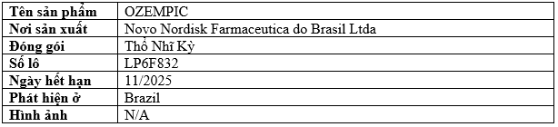 Nhà sản xuất chính hãng của OZEMPIC đã xác nhận rằng ba sản phẩm được đề cập trong Cảnh báo này là giả: các sản phẩm trình bày sai danh tính và nguồn gốc vì chúng không phải do Novo Nordisk sản xuất: