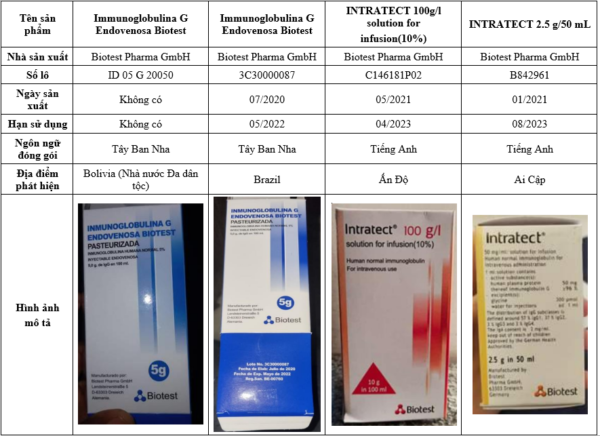 Cảnh báo này đề cập đến bốn lô thuốc Intratect giả được báo cáo từ Brazil (9/2021), Ấn Độ (2/2022), Bolivia (Nhà nước Đa dân tộc) (4/2022) và Ai Cập (4/2022).