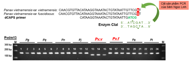 Hình 3.  Định danh gen của 2 loài Panax vietnamensis Ha et Grushv. (PVV), Panax vietnamensis var. fuscidiscus (PVF)