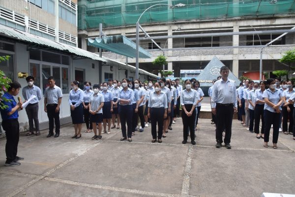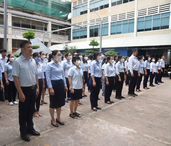 Đồng chí Trần Việt Hùng, Bí thư Đảng bộ cùng toàn thể viên chức-người lao động thực hiện nghi thức chào cờ.