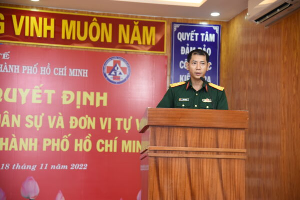 Tại buổi lễ, đồng chí Huỳnh Văn Tú đã công bố và trao Quyết định thành lập Ban Chỉ huy quân sự và Quyết định bổ nhiệm cán bộ Ban Chỉ huy quân sự cơ sở Viện Kiểm nghiệm thuốc Tp. Hồ Chí Minh.
