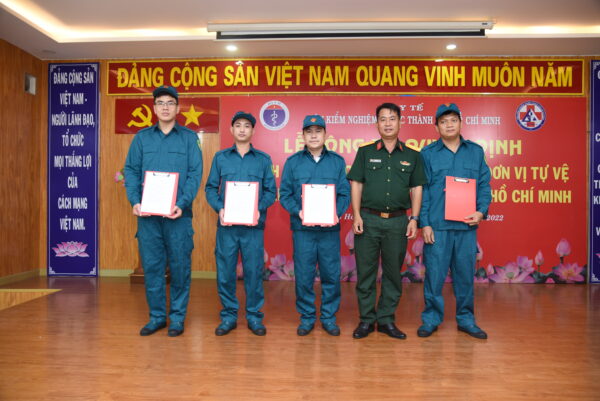 Chiều ngày 18 tháng 11 năm 2022, tại Viện Kiểm nghiệm thuốc thành phố Hồ Chí Minh, Lễ công bố Quyết định thành lập Ban chỉ huy quân sự, Trung đội tự vệ đã diễn ra trang trọng với sự có mặt của đồng chí trung tá Ngô Trí Tài – Phó Chỉ huy trưởng Ban Chỉ huy Quân sự quận 1, đồng chí thiếu tá Huỳnh Văn Tú – Trợ lý dân quân tự vệ – Phòng tham mưu Bộ Tư lệnh thành phố, đồng chí thiếu tá Hà Văn Công – Trợ lý dân quân tự vệ – Ban Chỉ huy quân sự quận 1, TS. Chương Ngọc Nãi – Phó Viện trưởng và đại diện phụ trách khoa/ phòng/ trung tâm và cán bộ chiến sĩ thuộc trung đội tự vệ của Viện.