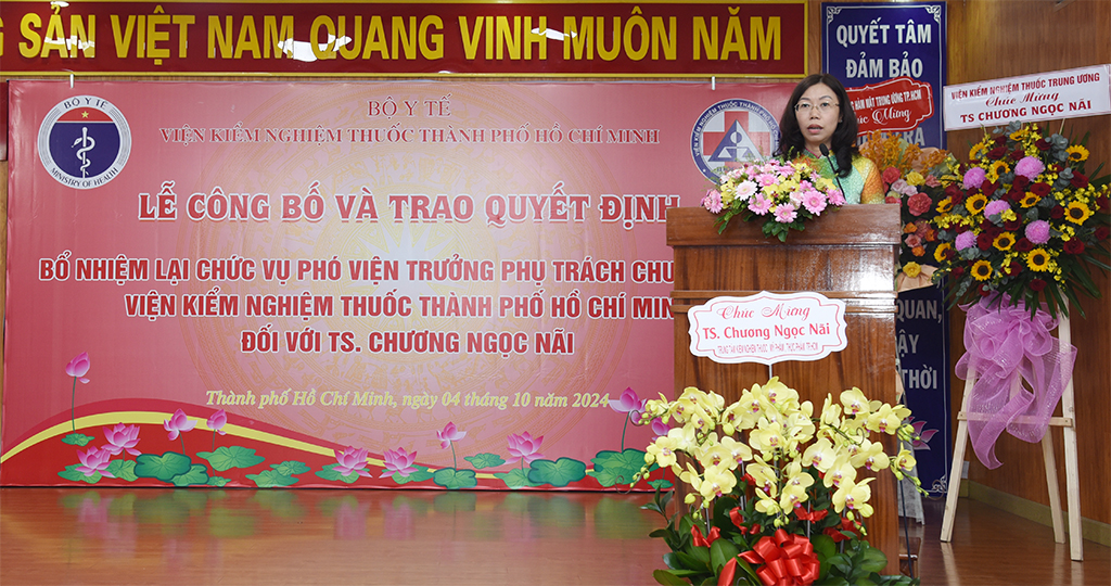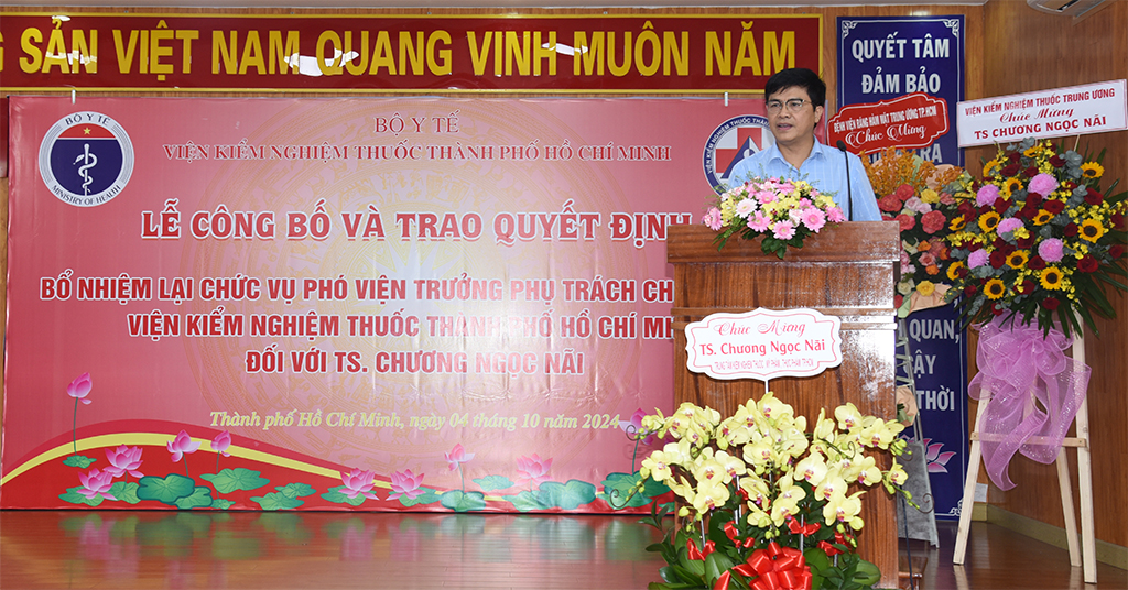 LỄ CÔNG BỐ VÀ TRAO QUYẾT ĐỊNH BỔ NHIỆM LẠI CHỨC VỤ PHÓ VIỆN TRƯỞNG PHỤ TRÁCH CHUYÊN MÔN VIỆN KIỂM NGHIỆM THUỐC THÀNH PHỐ HỒ CHÍ MINH – ĐỐI VỚI TS. CHƯƠNG NGỌC NÃI