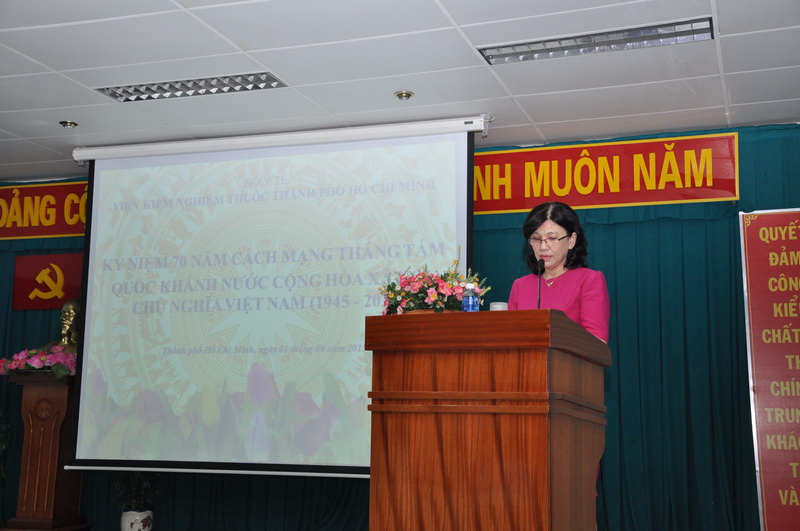 Cách đây 70 năm, vào ngày đầu thu 1945 tại Quảng trường Ba Đình lịch sử, với bản tuyên ngôn độc lập, Chủ tịch Hồ Chí Minh đã tuyên bố trước thế giới sự ra đời của nước Việt Nam Dân chủ Công hòa (nay là nước Công hòa XHCN Việt Nam), một mốc son chói lọi trong lịch sử dựng nước và giữ nước của dân tộc ta. Trong không khí hào hùng của đất nước những ngày đầu thu tháng 9, với tinh thần phấn đấu thi đua lập thành tích chào mừng Đại hội Đảng các cấp, ngày 1/9/2015 Viện Kiểm nghiệm thuốc TP.HCM long trọng tổ chức Lễ Kỷ niệm Quốc khánh 2/9/1945 – 2/9/2015.