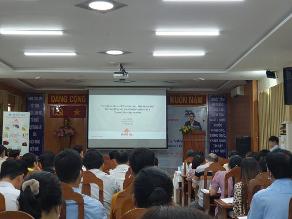 Nhằm hỗ trợ nâng cao năng lực quản lý, sử dụng và kiểm tra/hiệu chuẩn thiết bị độ hòa tan theo Dược điển Mỹ (USP) hiện hành, Viện Kiểm nghiệm thuốc thành phố Hồ Chí Minh (IDQC-HCMC) phối hợp cùng The United Pharmacopeia (USP) cùng tổ chức đào tạo kỹ thuật “Quản lý, kiểm tra, đánh giá hiệu năng máy độ hòa tan” thông tin chi tiết đợt tập huấn như sau: