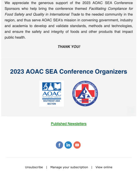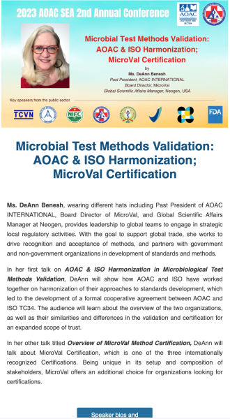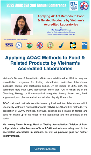 Thông tin về AOAC SEA 2023 – HỘI NGHỊ THƯỜNG NIÊN LẦN II (tiếp theo)
