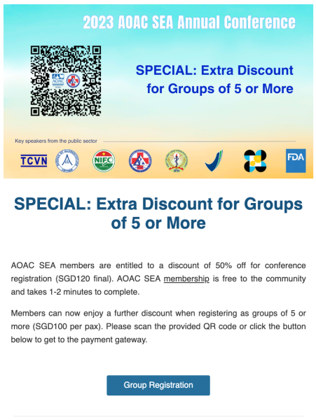 To accommodate stakeholders in the health supplement and traditional medicines community, as well as more of the mainstream food community, we have opened up 100 tickets more for registration. The extended deadline is 23 Jul 2023.