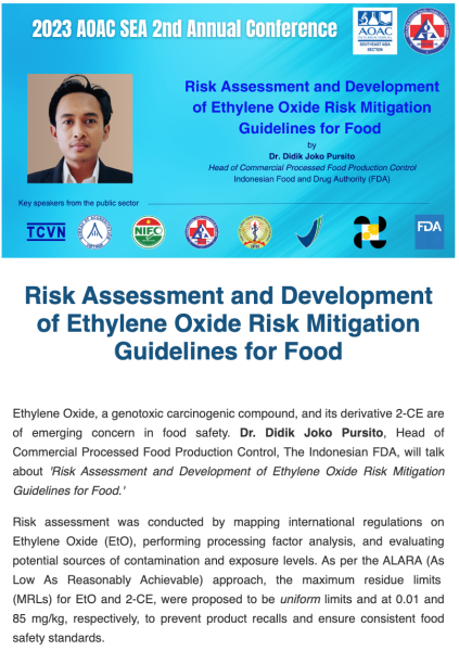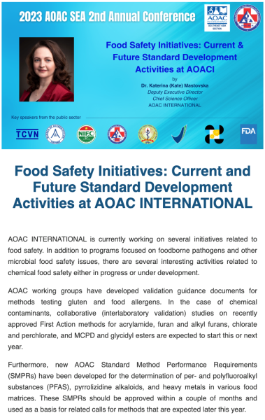 At the 2023 AOAC SEA 2nd Annual Conference, the audience will learn about standard setting activities for food safety and quality from the rich experience of Mr. Miura.