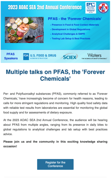 AOAC fits in the picture with its internationally recognized SMPRs and standard testing methods for the ASEAN community to align to and harmonize with. The Southeast Asia Section of AOAC International (AOAC SEA), through its annual conferences and the 5 Working Groups on capacity building, training of young scientists, microbiology, emerging issues and harmonization of methods, create a great platform for the public and private sectors to come together and realize the integration vision.
