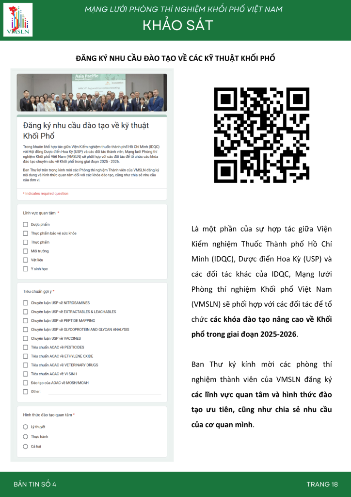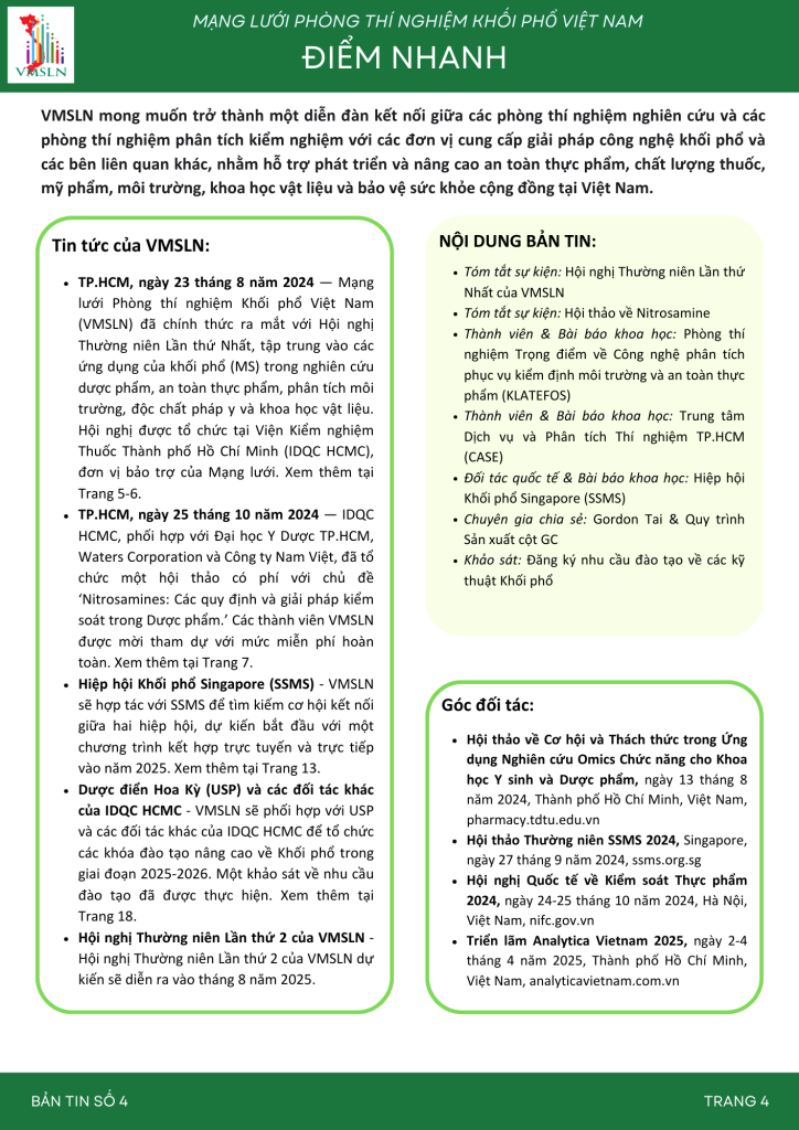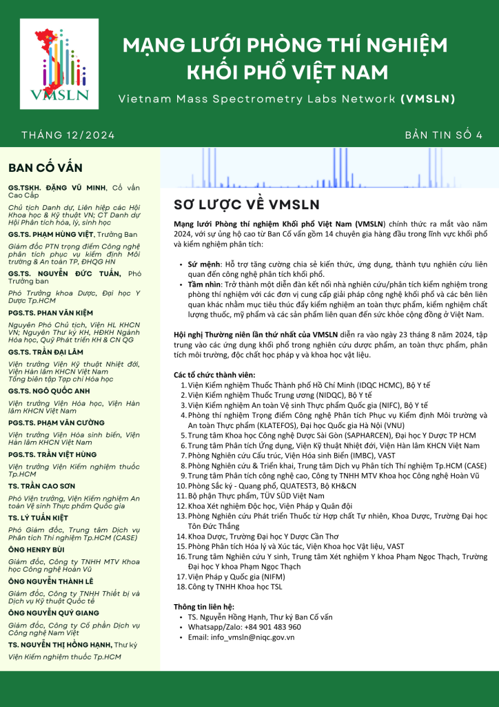 Mạng lưới Phòng thí nghiệm Khối phổ Việt Nam (VMSLN) VMSLN Newsletter 4 Ngày đăng 14/04/202510/06/2025 - Tác giả: IDQC VMSLN Newsletter 4
